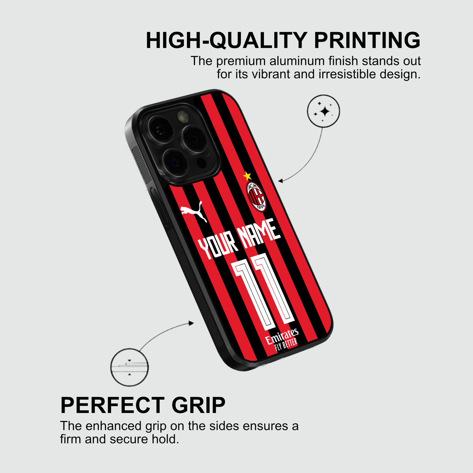 Take the legacy of San Siro with you and keep your phone safe in true Rossonero fashion with this custom edition case.