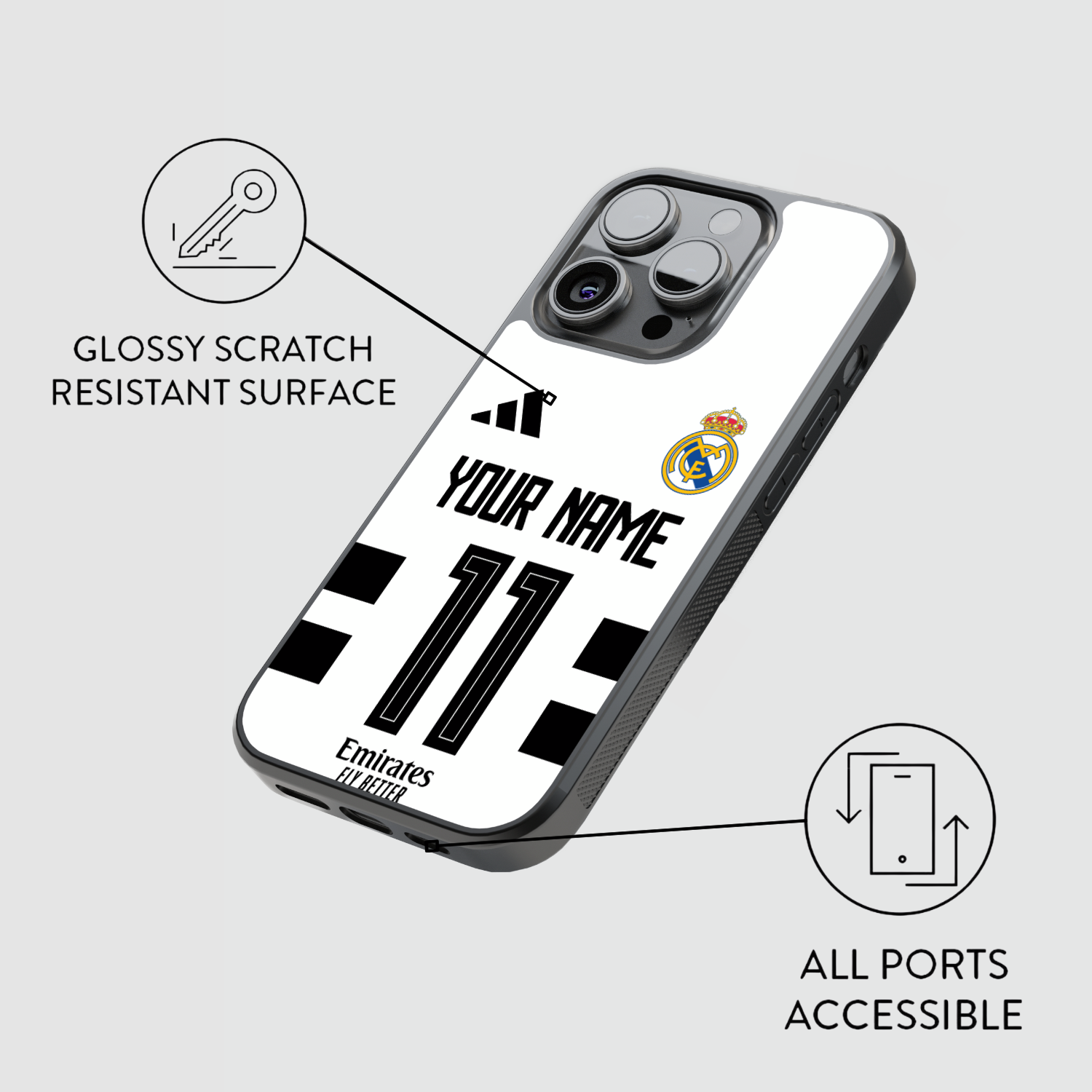 Carry the legacy of greatness with you and protect your phone in true Madridista style with this custom edition case.